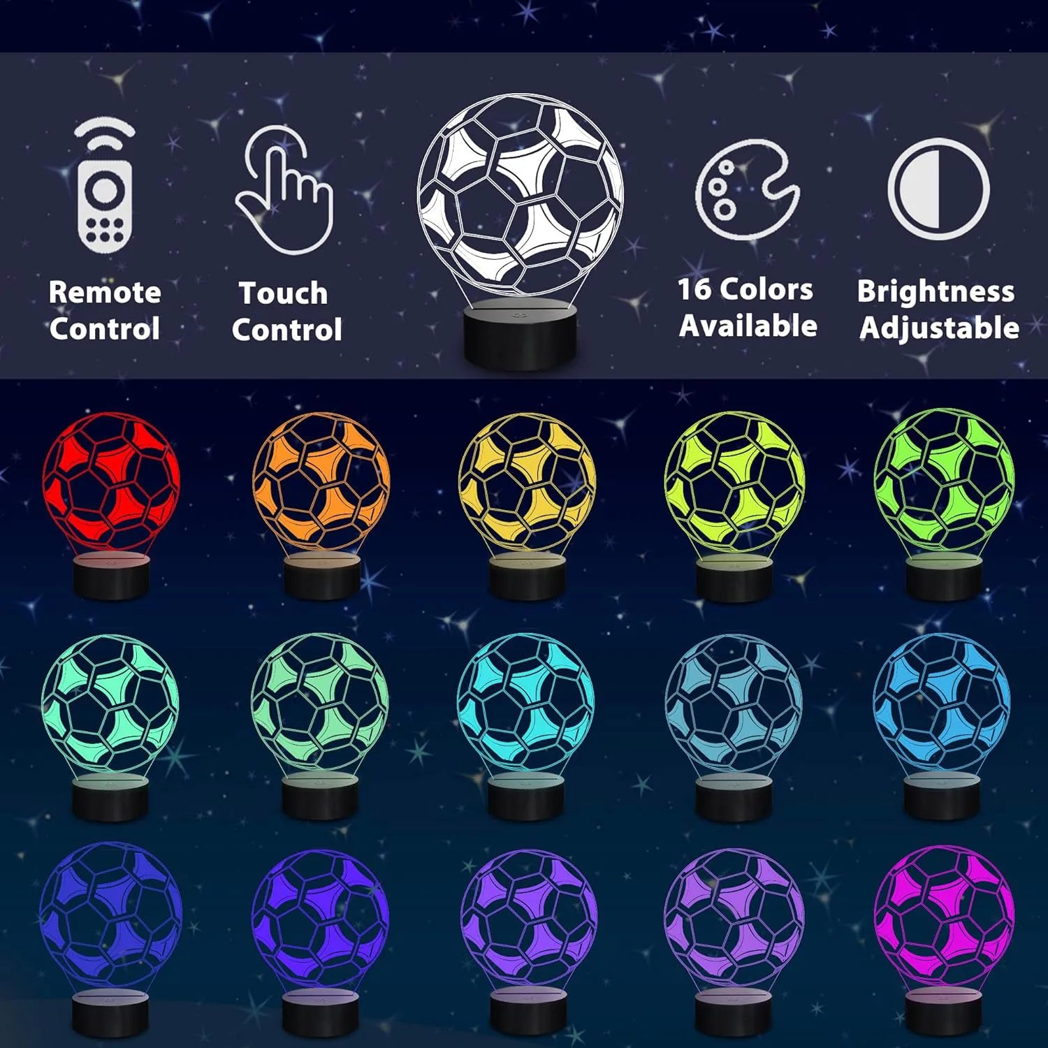 Économe en énergie grâce à sa technologie, elle éclaire avec douceur tout en exprimant un style unique et plein de caractère. Allumez la passion du football avec cette lampe de chevet ballon de foot, alliant design ludique et lumière apaisante. Fabriquée dans une matière lisse et résistante, elle apporte une touche sportive et élégante à la chambre. Sa forme sphérique fidèle au ballon classique diffuse une lueur douce et chaleureuse, idéale pour accompagner les soirées de lecture ou les nuits des petits champions.